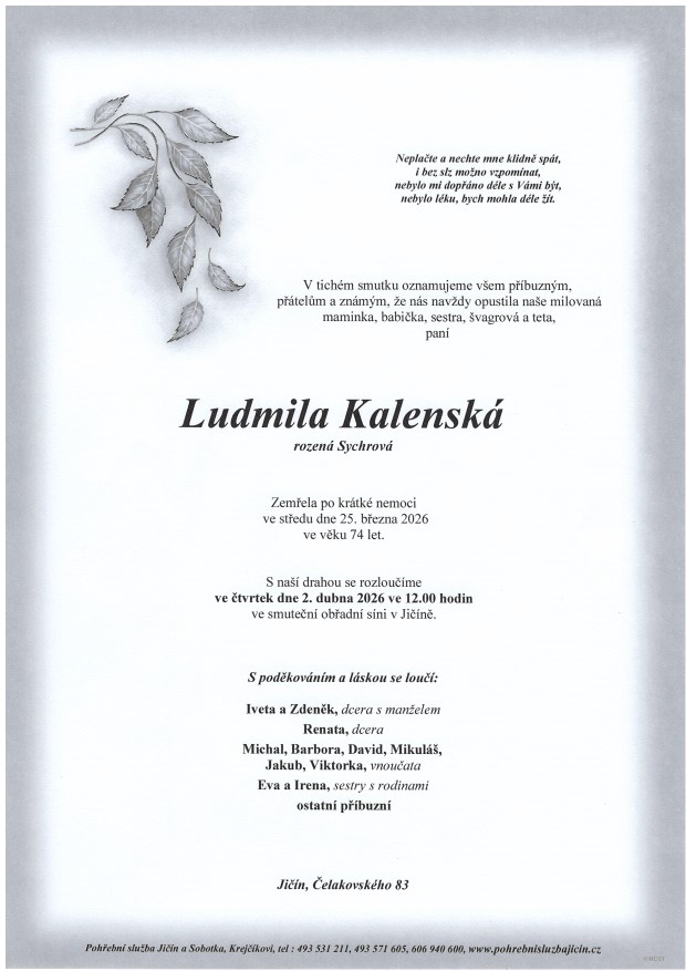 < AKTUÁLNÍ SMUTEČNÍ OZNÁMENÍ >
